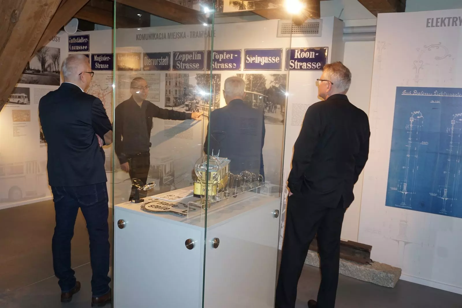 Po krótkim spacerze po Parku Centralnym, przejściu obok fontanny usytuowanej nad zakolem rzeki Łyny, której ważnym elementem są kamienne półkule symbolizujące Układ Słoneczny dotarliśmy do Muzeum Nowoczesności znajdującym się w Tartaku Raphaelsohnów. Muzeum zlokalizowane jest na terenie dawnej zajezdni trolejbusowej. W odresturowanym budynku dawnej zajezdni, na przeciwko muzeum, organizowane są wystawy. Również budynek, gdzie znajduje się Wydział Komunikacji w Olsztynie, pierwotnie służył jako zajezdnia trolejbusów.